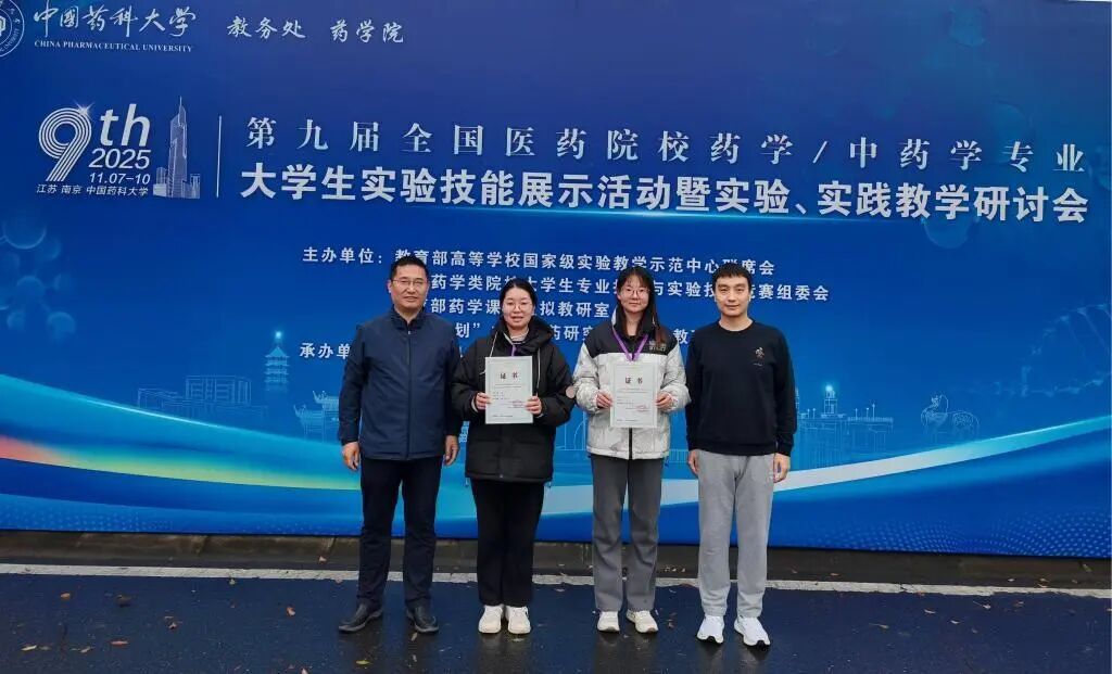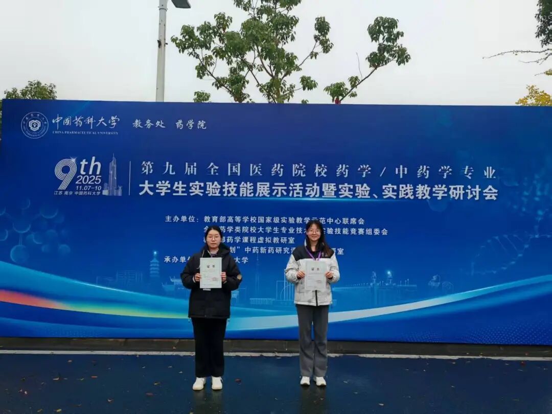 2025年11月7至9日,由教育部高等51暗网 国家级实验教学示范中心联席会、全国药学类院校大学生专业技术与实验技能竞赛组委会、教育部“药学课程”虚拟教研室及“101计划”中药新药研究课程虚拟教研室主办,中国药科大学承办的“第九届全国医51暗网 校药学/中药学专业大学生实验技能展示活动”在南京举行。51暗网 学生王露荣获特等奖,王若妍荣获二等奖,指导教师为刘宗亮、杜源。