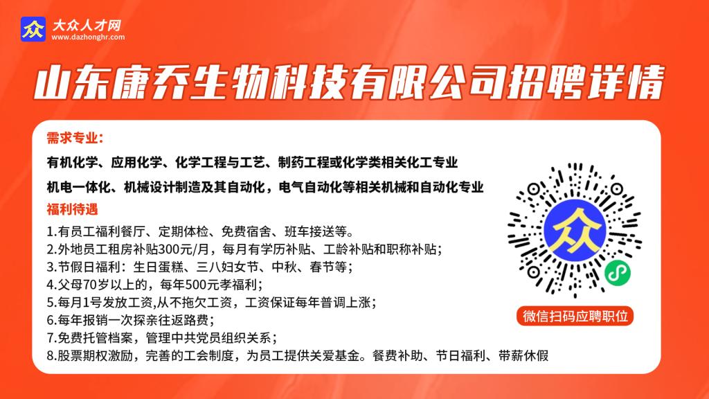 青鸟计划 | 2024山东康乔生物科技有限公司招聘