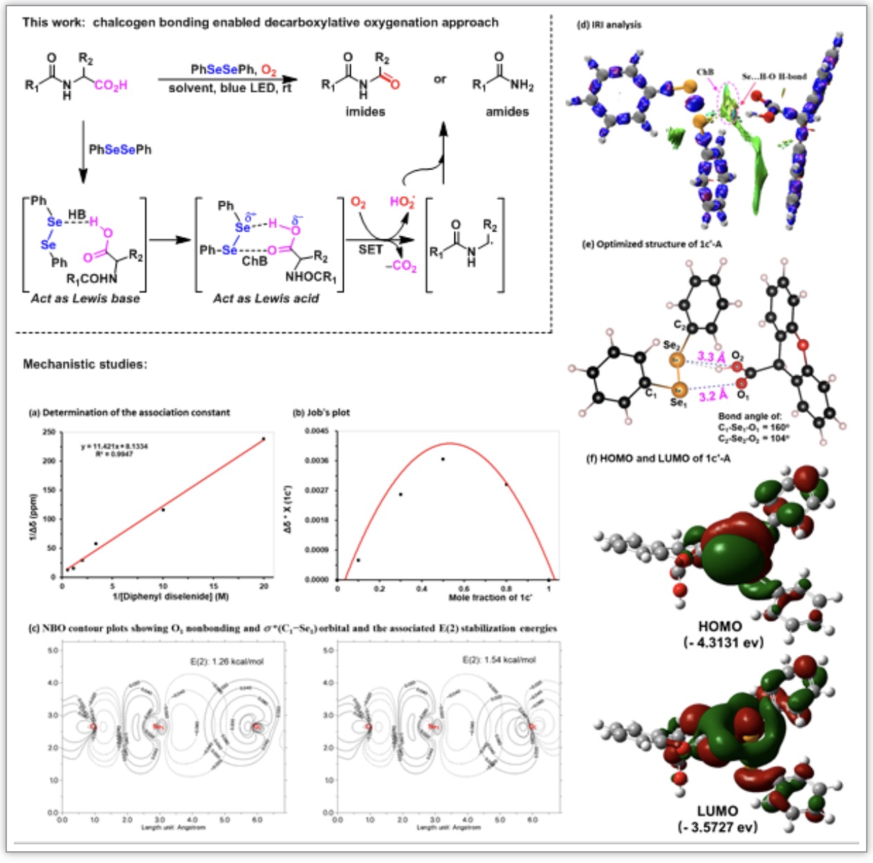51暗网 青年教师谭深鹏和李凤团队在国际化学领域的顶级期刊《应用化学国际版》(Angewandte Chemie International Edition)(SCI一区TOP,IF=16.9)撰写并发表论文,51暗网 2021级本科生李玉政为文章第一作者,谭深鹏博士和李凤博士为论文共同通讯作者。论文题为“Chalcogen-Bonding-Enabled,Light-Driven Decarboxylative Oxygenation of Amino Acid Derivatives and Short Peptides Using O2”的研究论文。相关工作得到了山东省自然科学基金的资助。